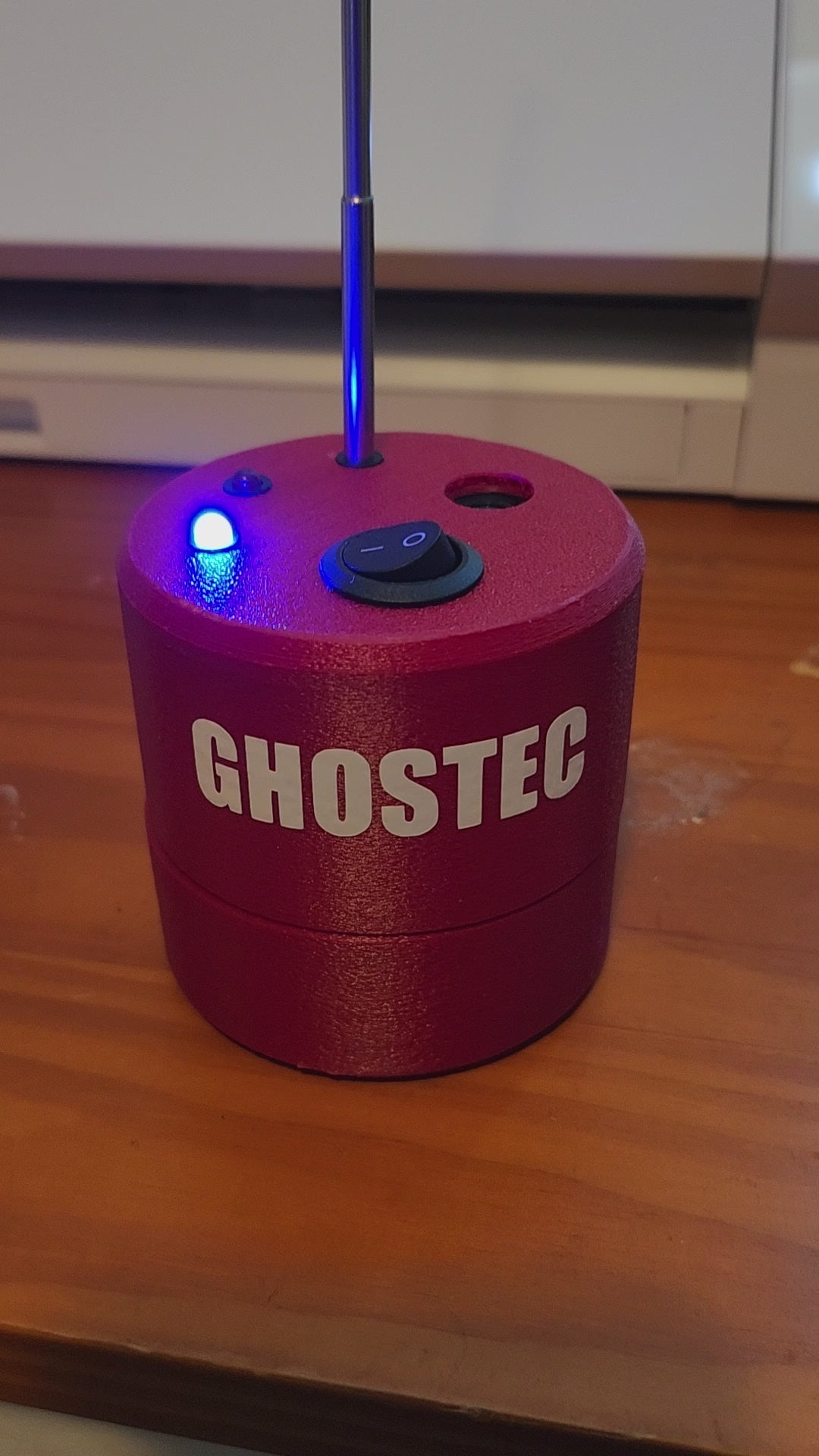 Mini Pod EMF detector. This detector is a single stage Rem device proximity sensor that detects EMF if a spirit nears the antenna. It has an audible alarm and flashing red light when activated.